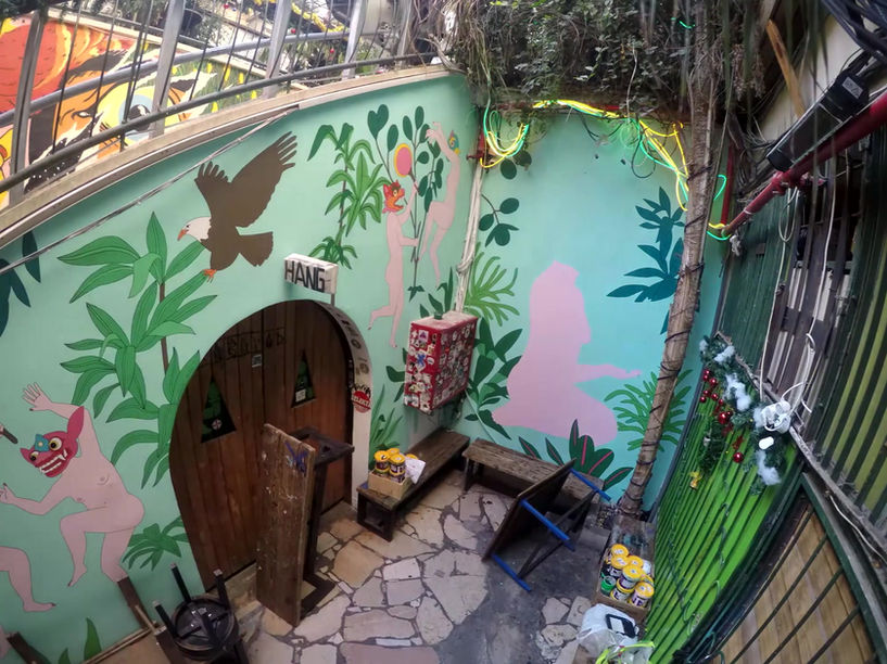 Mural for the nightlife wonderland Kuli Alma. Kuli Alma is a music and art-focused nightlife institution nestled into the creative crux of south Tel Aviv. It focuses on bringing out-of-the-box content and art to a far-reaching audience of insatiable night owls, music lovers and culture enthusiasts and showcases different murals made by an array of Israeli artists, to create a changing gallery of contemporary Israeli art. The mural is a celebration of women empowerment, of witchiness and of letting go of conventional behaviors and ways of thinking, for the sake of connecting to our true essence which is free, wild and infinite and can be excessed through dance and music. The inspiration for the mural was Bali tribal masks and Buddhist ceremonies in which the participants wear masks that embody the spirits to which they seek to connect in order to release negative emotional patterning and cultivate a higher state of being.